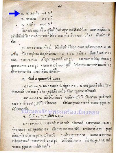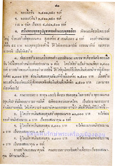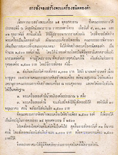 เนื้อทองคำ ( น้ำหนัก ประมาณ 6 สลึง ) จำนวน 2,500 องค์